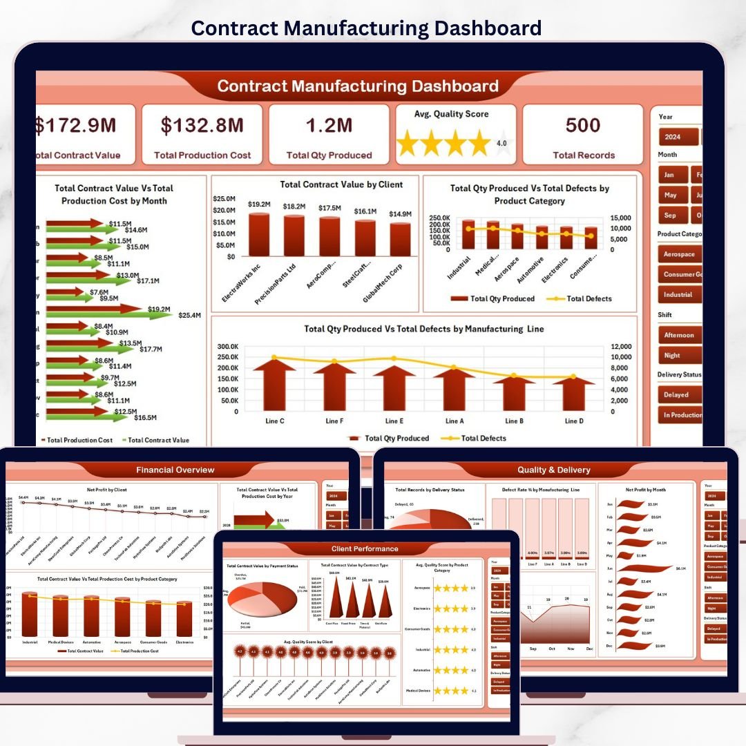 📦 What’s Inside the Contract Manufacturing Dashboard in Excel