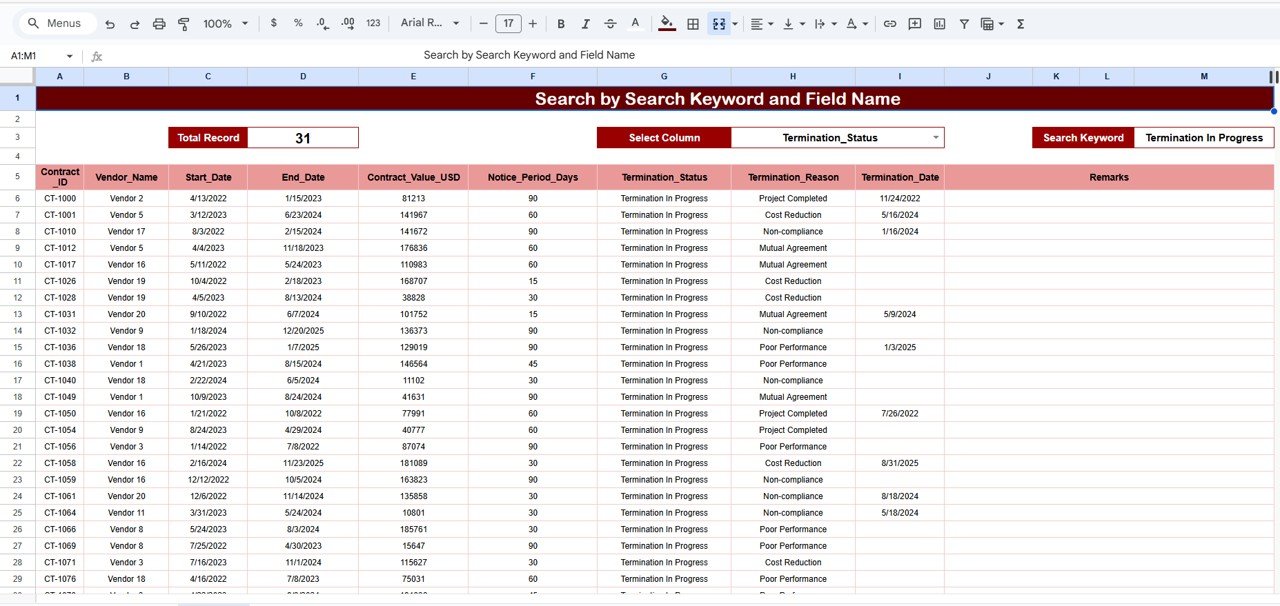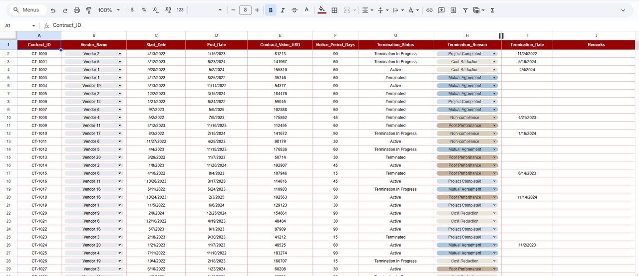 Contract Termination Tracker in Google SheetsContract Termination Tracker in Google Sheets