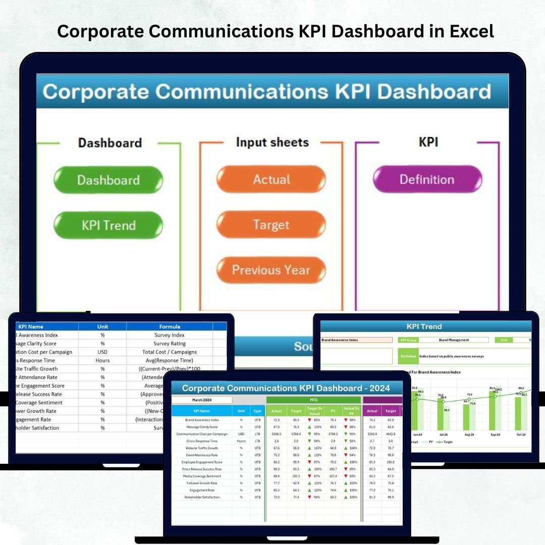 This Excel-based dashboard converts raw data into interactive visuals and actionable insights, allowing corporate communicators, HR leaders, and PR professionals to understand the real impact of their strategies. Whether you’re managing employee engagement campaigns, media relations, or stakeholder updates — this dashboard ensures your communication stays measurable, transparent, and aligned with business goals.