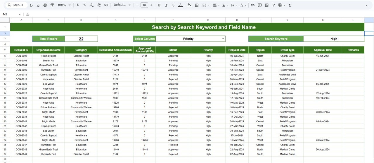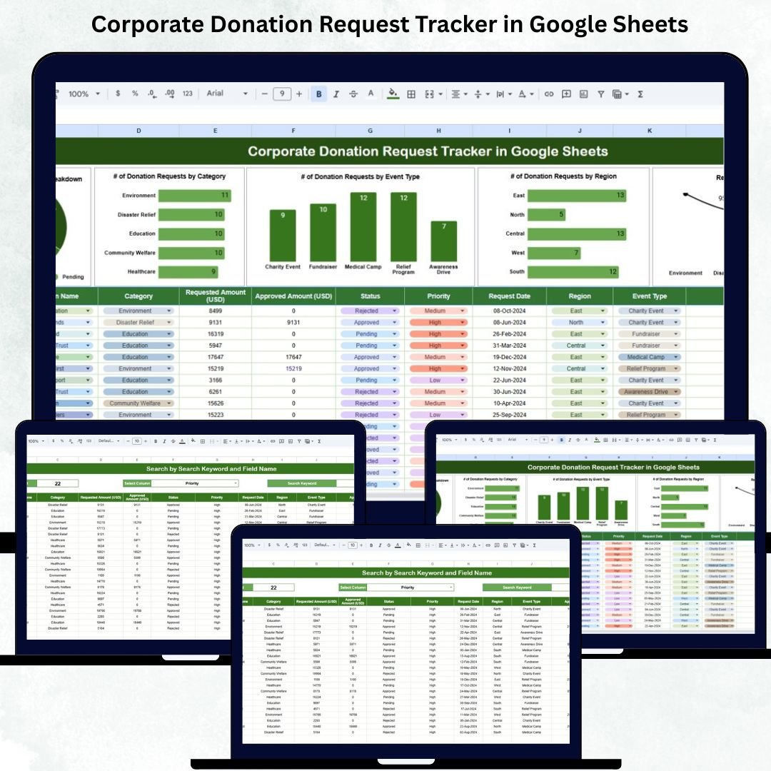 Corporate donation management becomes increasingly complex as organizations grow, expand their CSR footprint, and receive donation requests from various regions, events, and community programs. Without a structured system, teams often lose track of pending approvals, budget allocations, and category-wise impact. The Corporate Donation Request Tracker in Google Sheets offers a simple yet powerful solution to centralize, analyze, and manage all donation requests with full transparency.Corporate Donation Request Tracker in Google Sheets