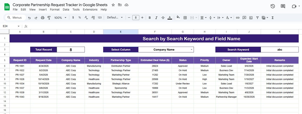 That is exactly why the Corporate Partnership Request Tracker in Google Sheets becomes an essential business development and operations tool.