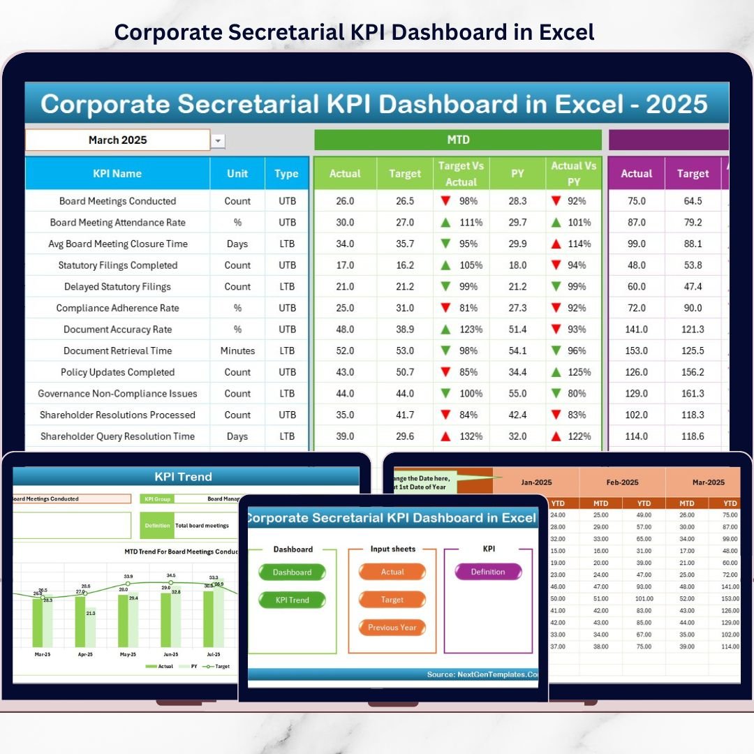 ## 📂 What’s Inside the Corporate Secretarial KPI Dashboard in Excel