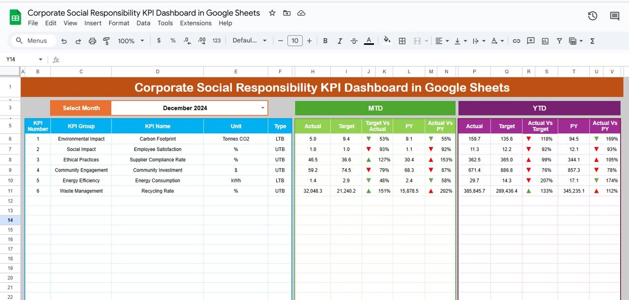 This ready-to-use, cloud-based dashboard helps CSR managers, sustainability officers, and business leaders monitor critical CSR KPIs in real time. With Month-to-Date (MTD) and Year-to-Date (YTD) tracking, year-over-year comparisons, and interactive visuals, this tool makes CSR reporting easy, collaborative, and impactful.