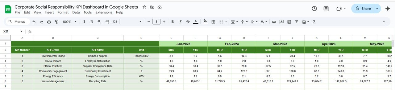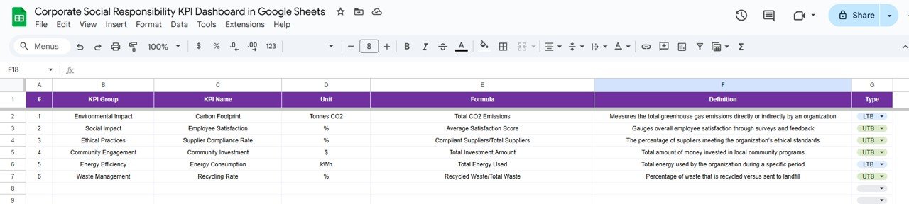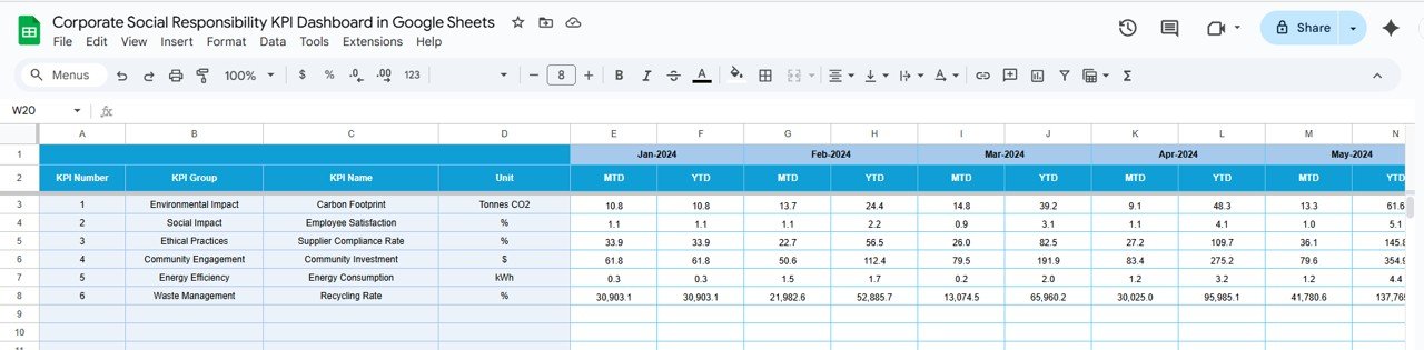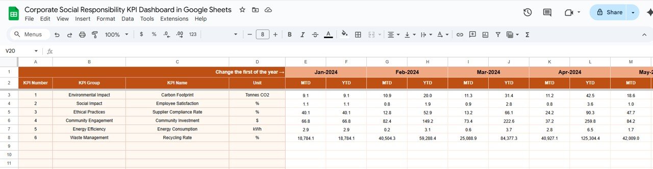 ✅ Customizable KPIs – Add or adjust to fit your organization’s CSR goals