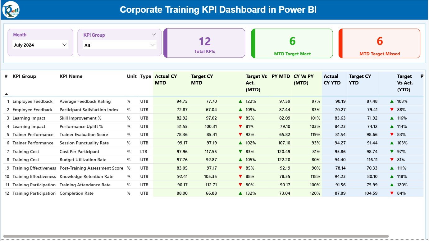 ✨ Key Features of the Corporate Training KPI Dashboard in Power BI