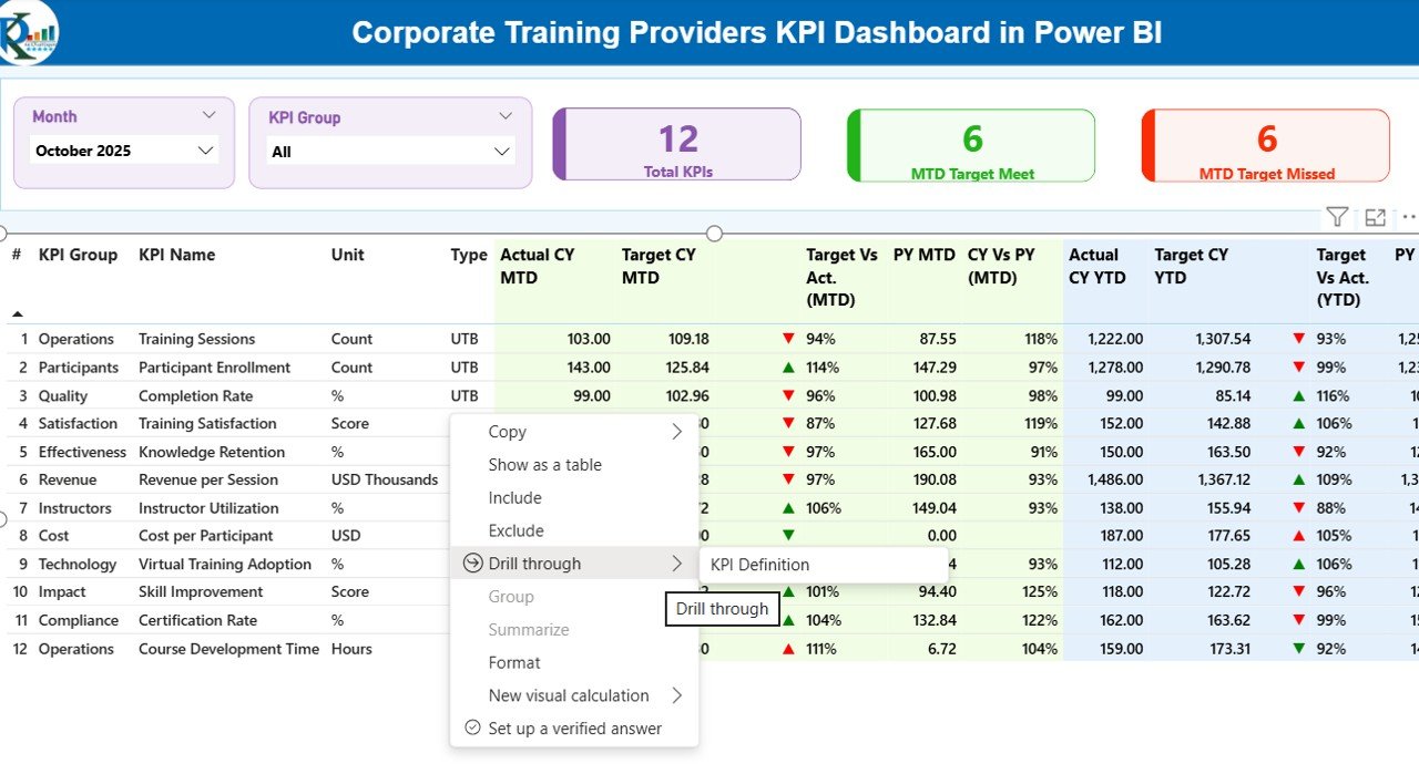 📊 What’s Inside the Corporate Training Providers KPI Dashboard in Power BI