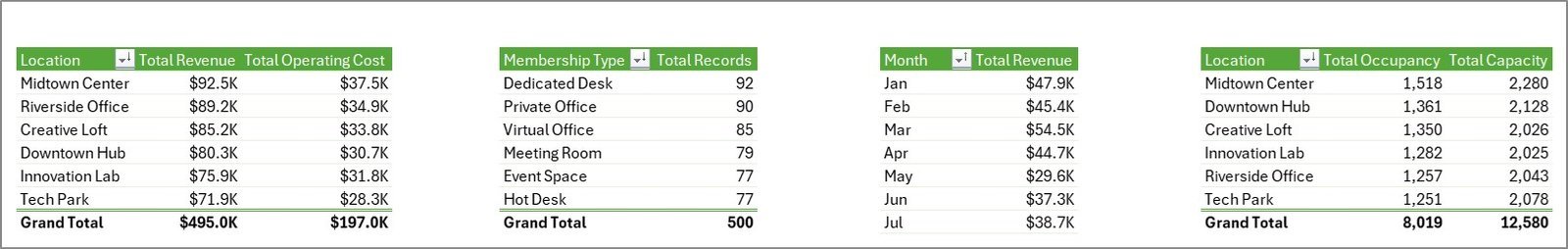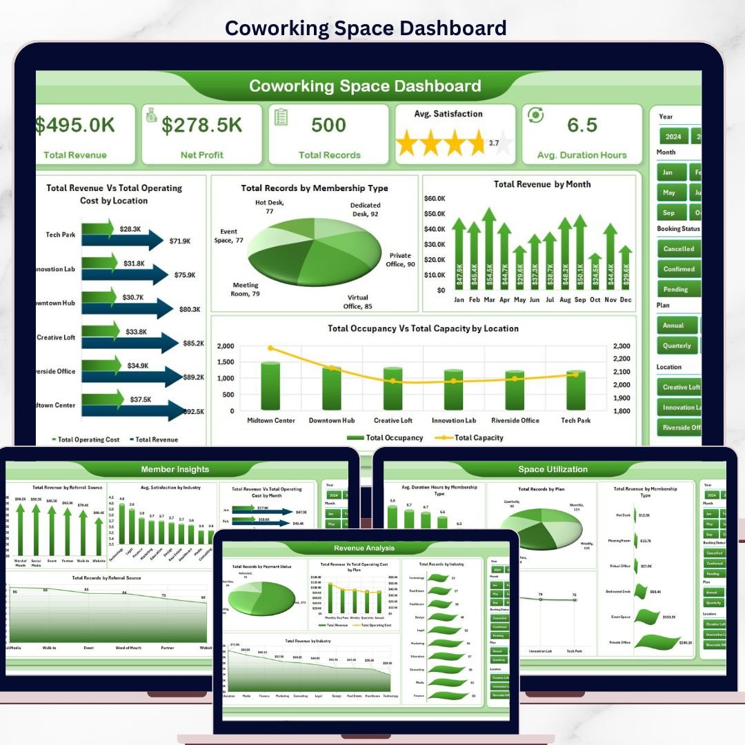 📦 What’s Inside the Coworking Space Dashboard in Excel