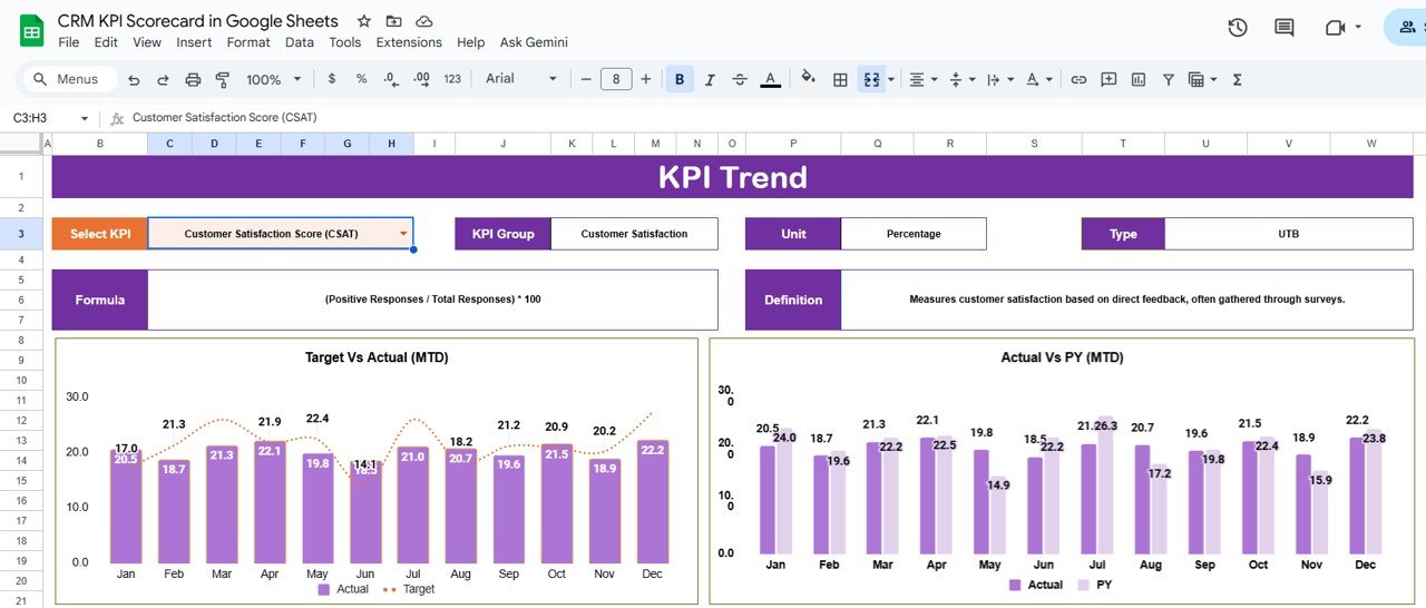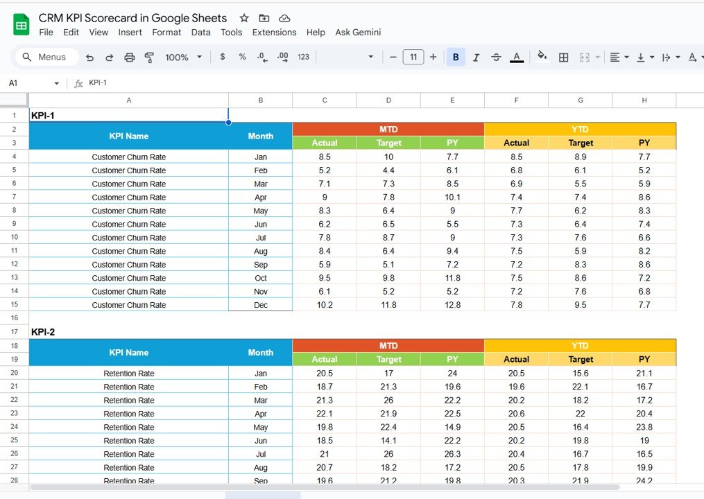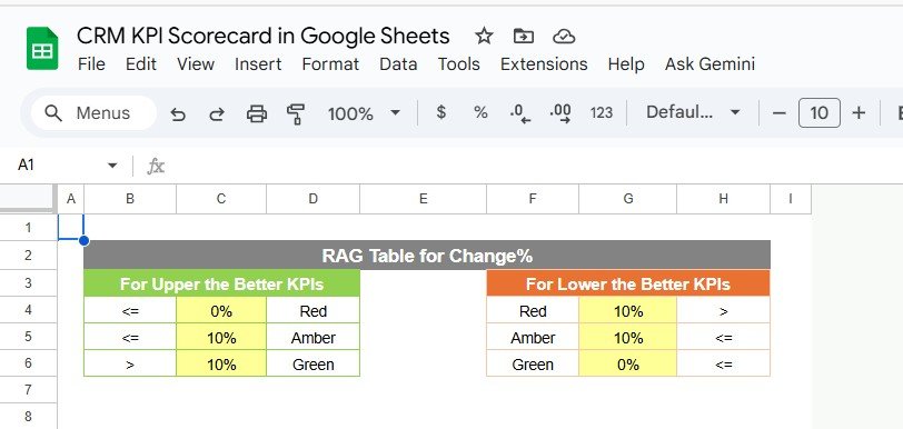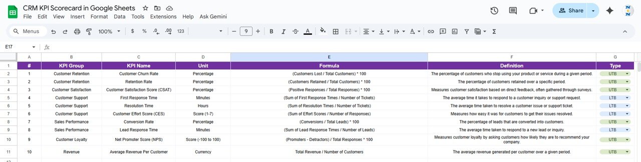 🔑 Key Features of the CRM KPI Scorecard in Google Sheets