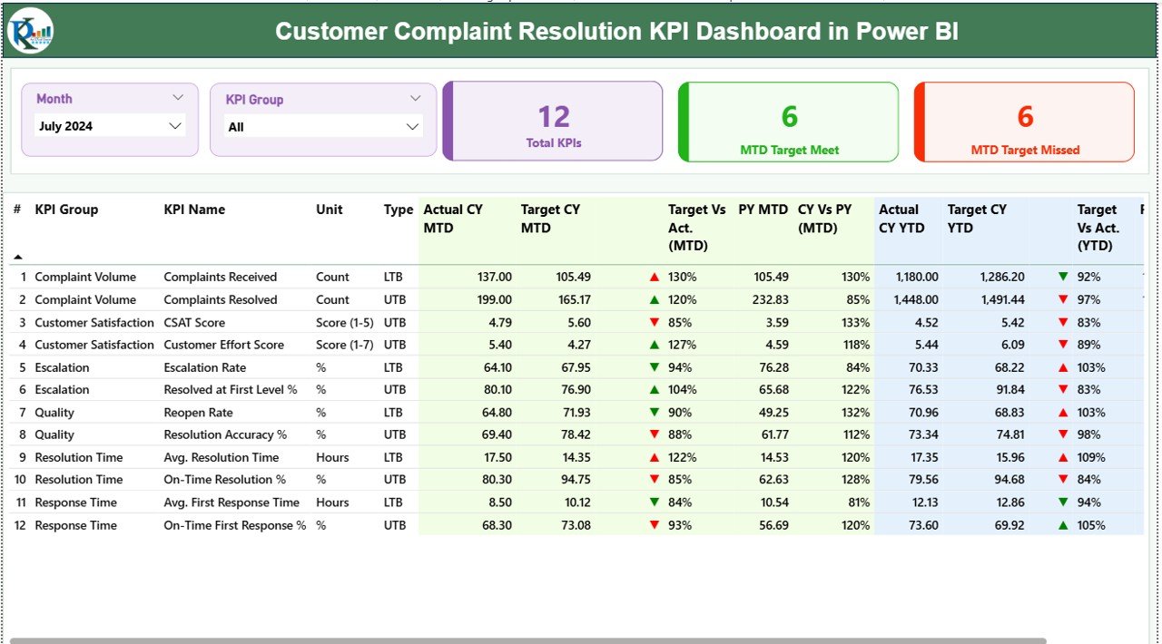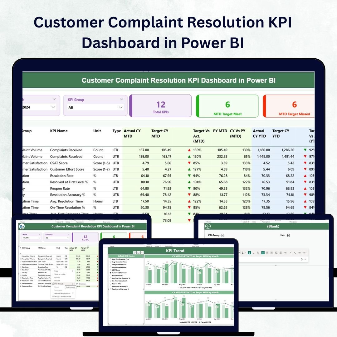 📂 What’s Inside the Customer Complaint Resolution KPI Dashboard