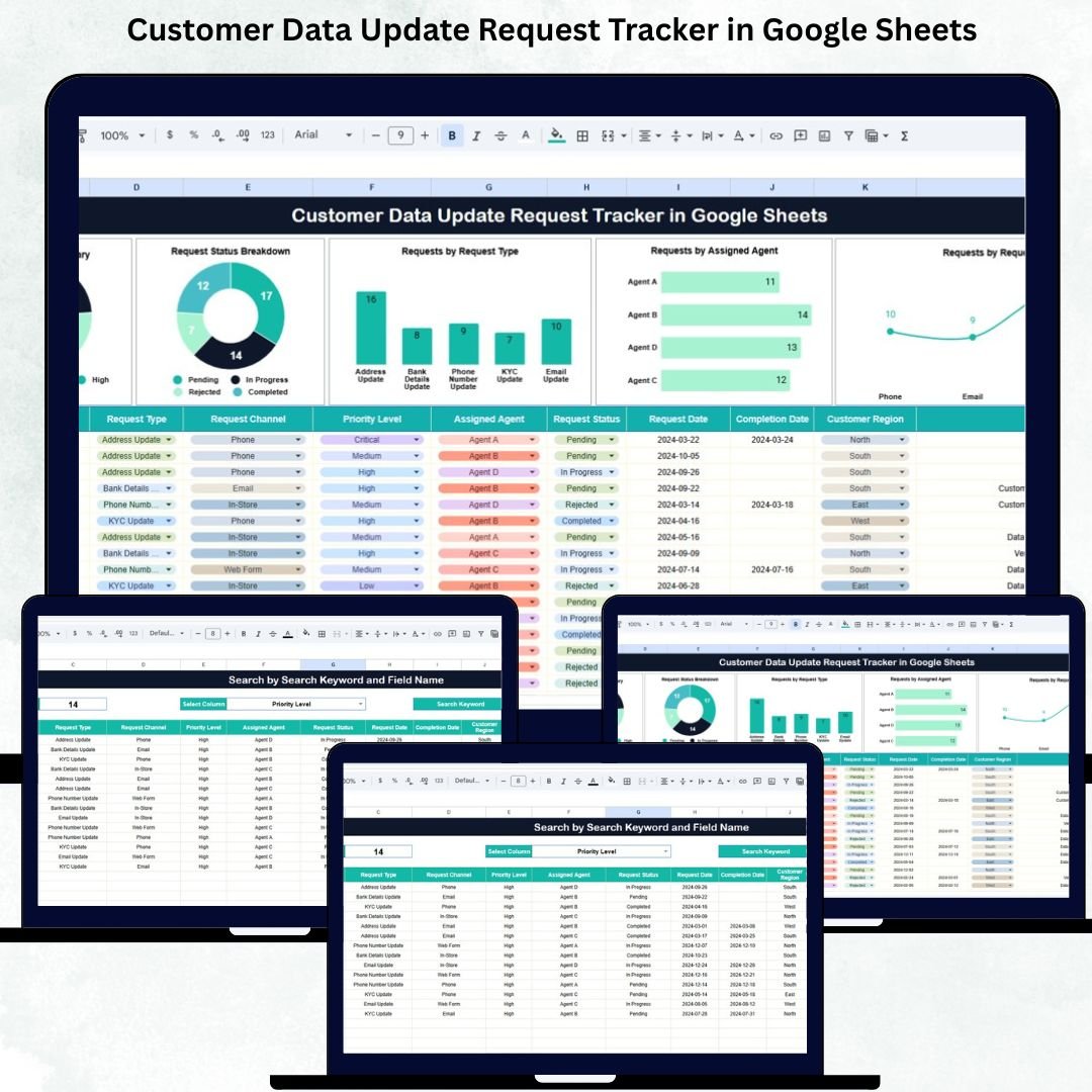 Managing customer data updates is a major responsibility for any organization. Every month, hundreds of customers request changes—address updates, email corrections, phone number changes, KYC updates, account details, payment information, and more. When these requests are tracked manually through emails, notes, or scattered spreadsheets, teams face delays, errors, and missed requests. This leads to compliance risks, unhappy customers, and slow operations. The Customer Data Update Request Tracker in Google Sheets solves this problem instantly with a clean, automated, and centralized system.
