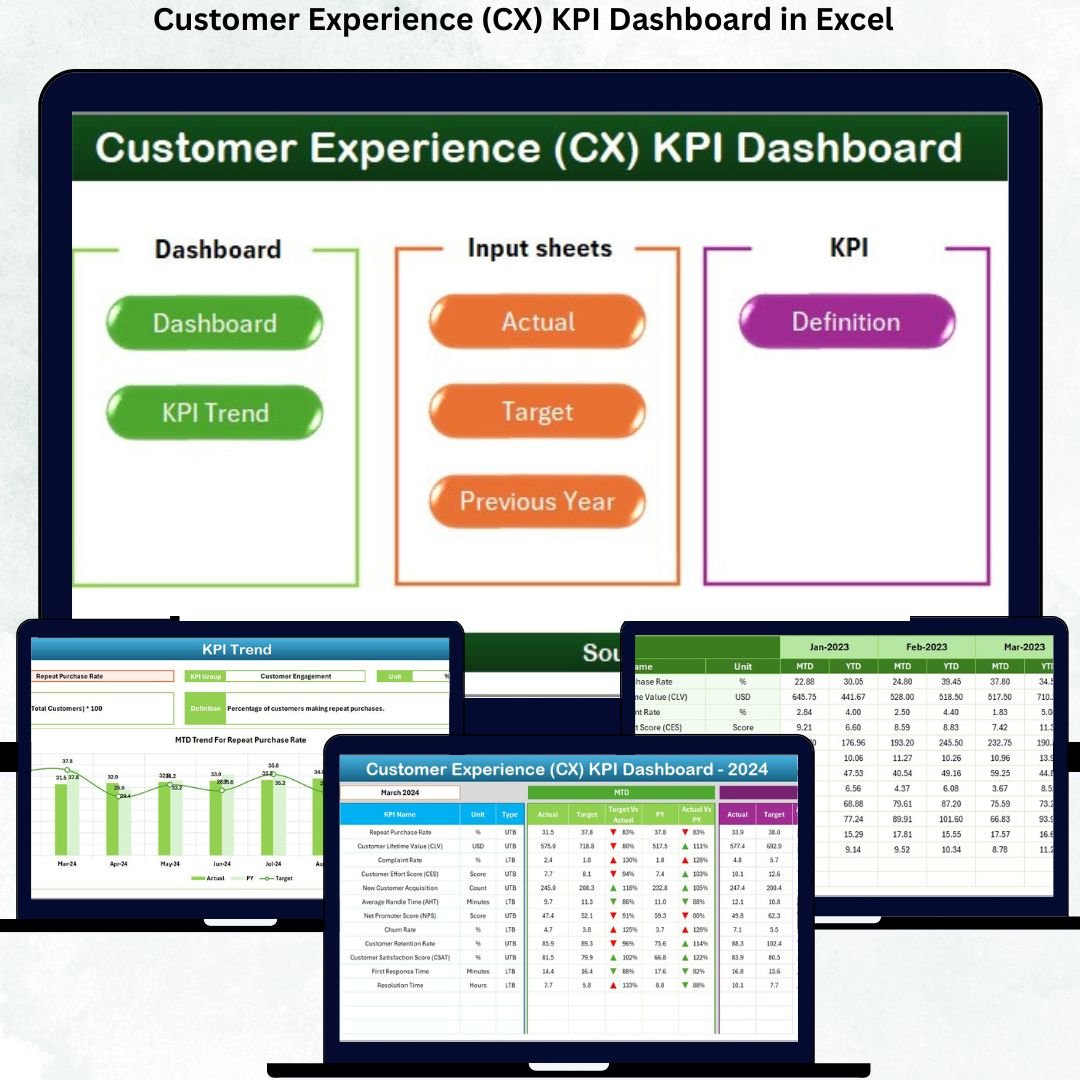 📂 What’s Inside the Customer Experience (CX) KPI Dashboard in Excel