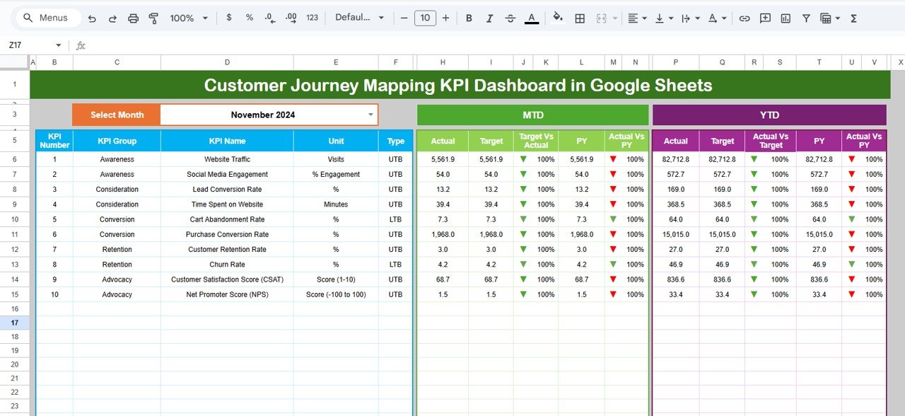 The Customer Journey Mapping KPI Dashboard in Google Sheets solves this challenge by providing a structured, data-driven, and easy-to-use system for tracking customer journey performance from start to finish. This ready-to-use dashboard converts customer interaction data into meaningful KPIs, comparisons, and trends—helping teams understand what works, what does not, and where improvement is required.