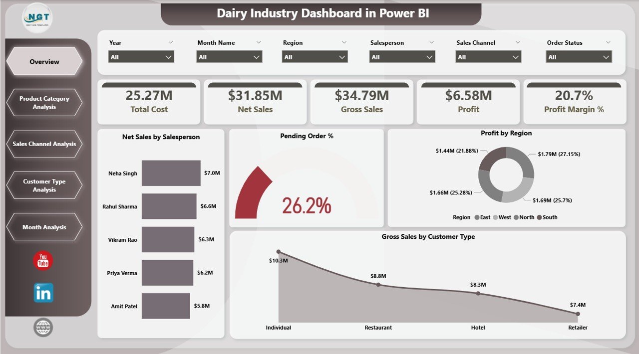 🔑 Key Features of Dairy Industry Dashboard in Power BI