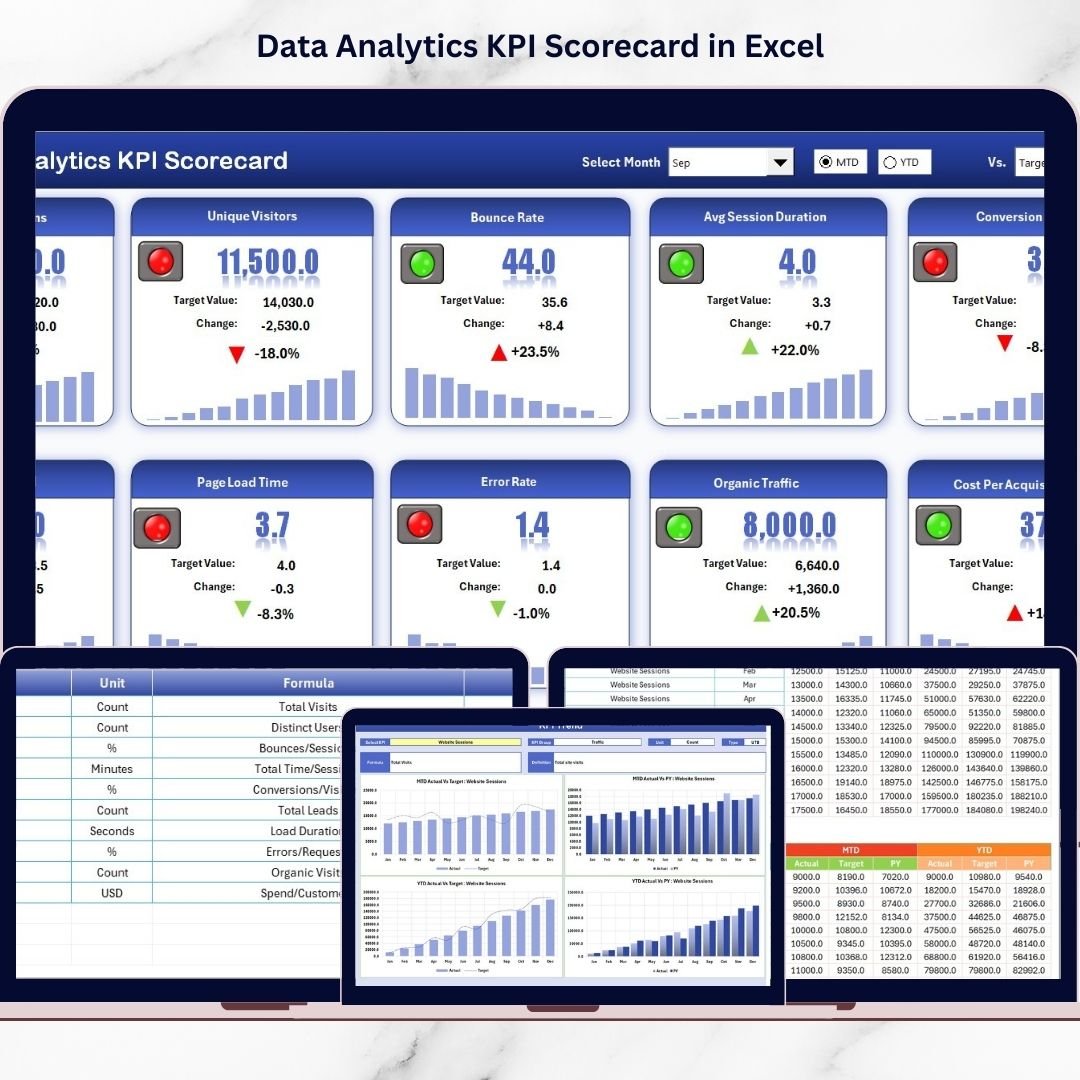 📦 What’s Inside the Data Analytics KPI Scorecard in Excel