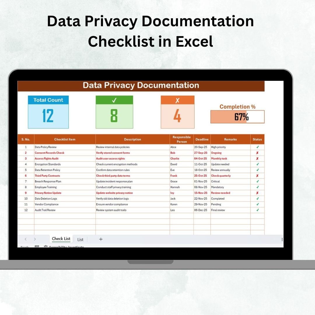 In today’s fast-paced digital world, Data Privacy Documentation Checklist in Excel businesses deal with enormous amounts of sensitive data every single day—from customer records to financial details. While data is the backbone of growth, innovation, and decision-making, it also comes with risks such as unauthorized access, cyber threats, compliance violations, and potential breaches. For organizations to stay secure and compliant, a structured system for tracking and documenting privacy measures is essential.