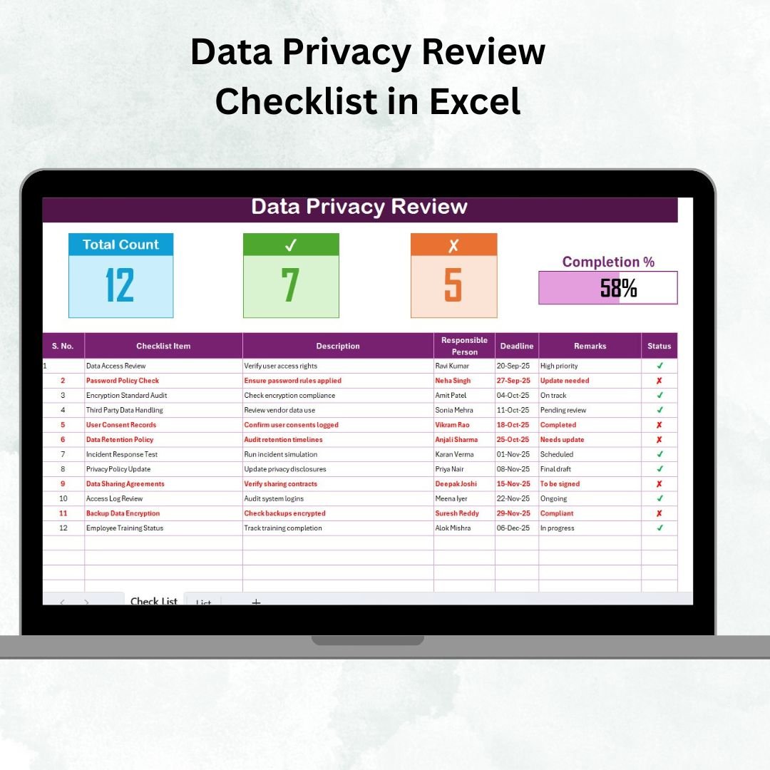 Data Privacy Review Checklist in ExcelData Privacy Review Checklist in Excel