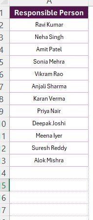 • 📂 List Sheet – Stores the master list of responsible persons to reduce errors.