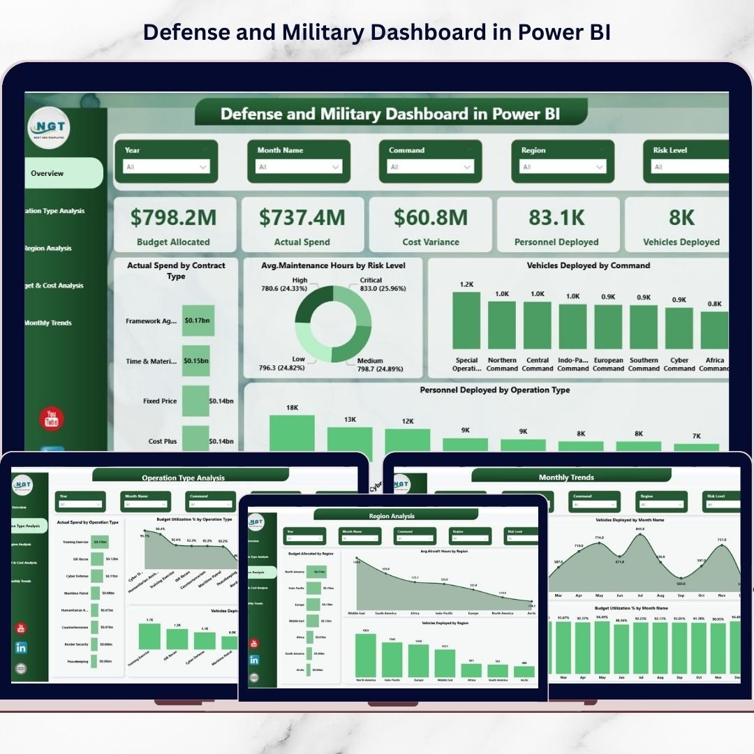 By combining financial analytics, operational tracking, regional comparisons, and trend analysis, the Defense and Military Dashboard in Power BI enables leadership teams to move from reactive reporting to proactive strategic planning.