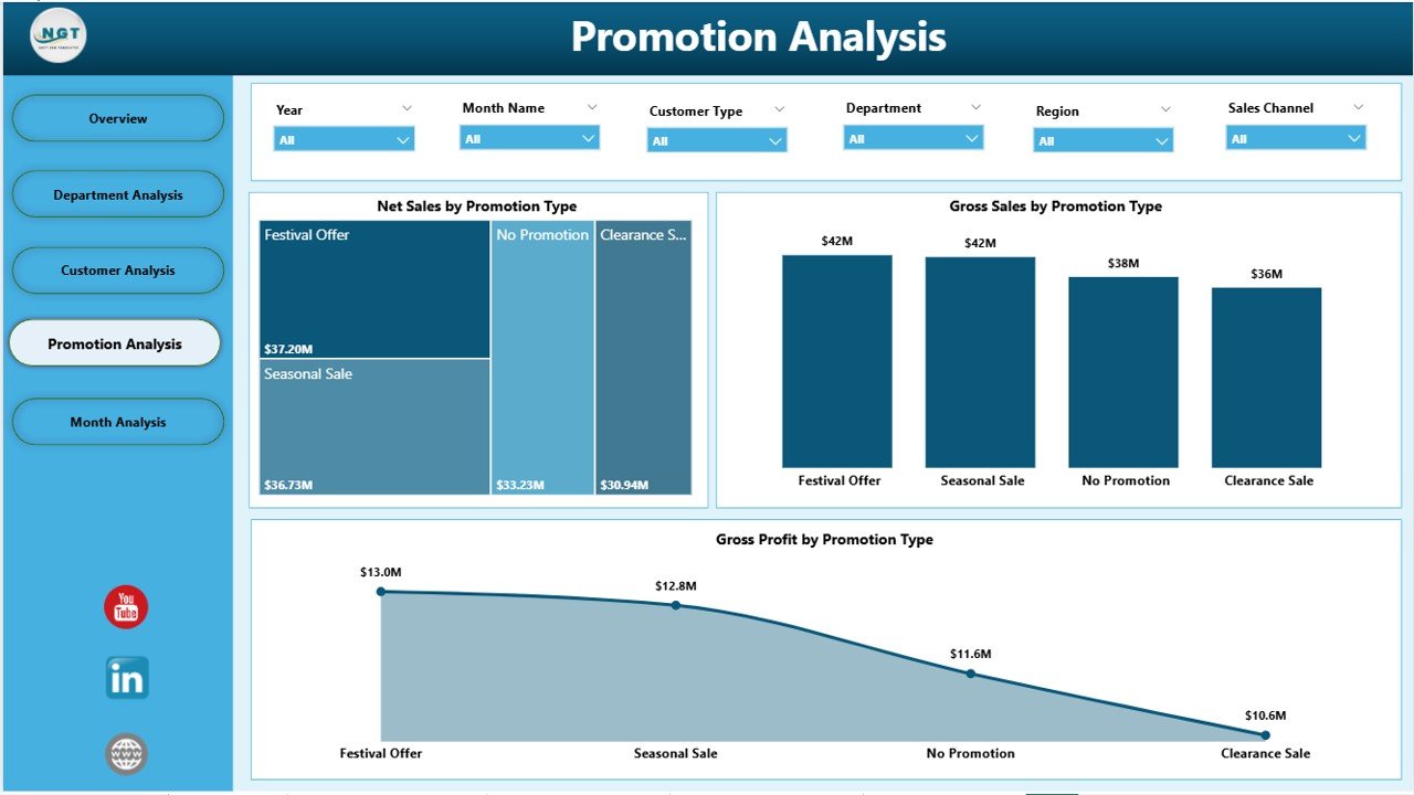 📌 Promotion Analysis Page – Evaluate net sales, gross sales, and gross profit by promotion type