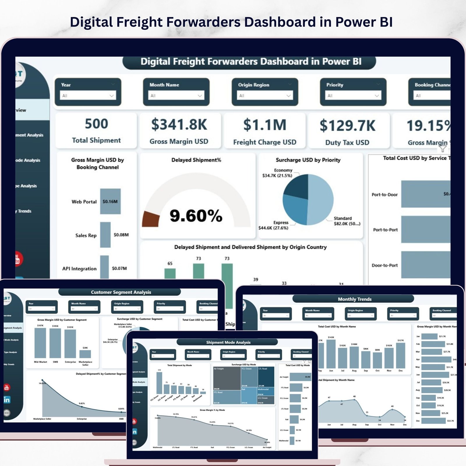 That is why modern logistics companies are shifting toward data-driven analytics dashboards. The Digital Freight Forwarders Dashboard in Power BI is a powerful and ready-to-use business intelligence solution that helps freight forwarding companies monitor shipments, analyze operational costs, track delivery performance, and evaluate profitability using interactive visual reports.