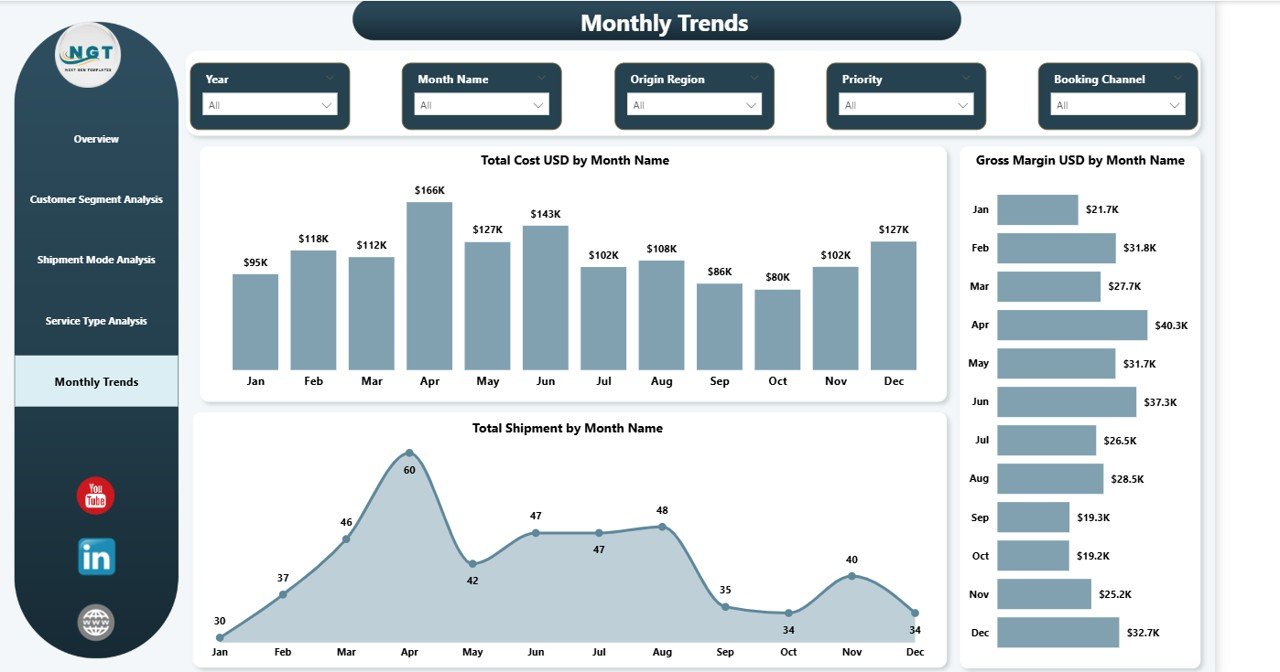 Monitor shipment volume, cost trends, and profit fluctuations throughout the year.