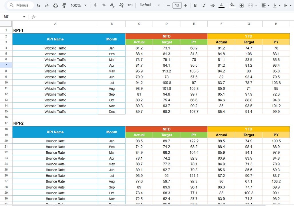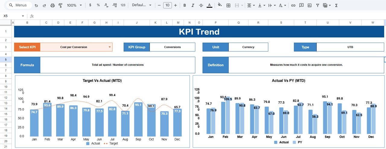 ✨ Key Features of the Digital Marketing KPI Scorecard in Google Sheets
