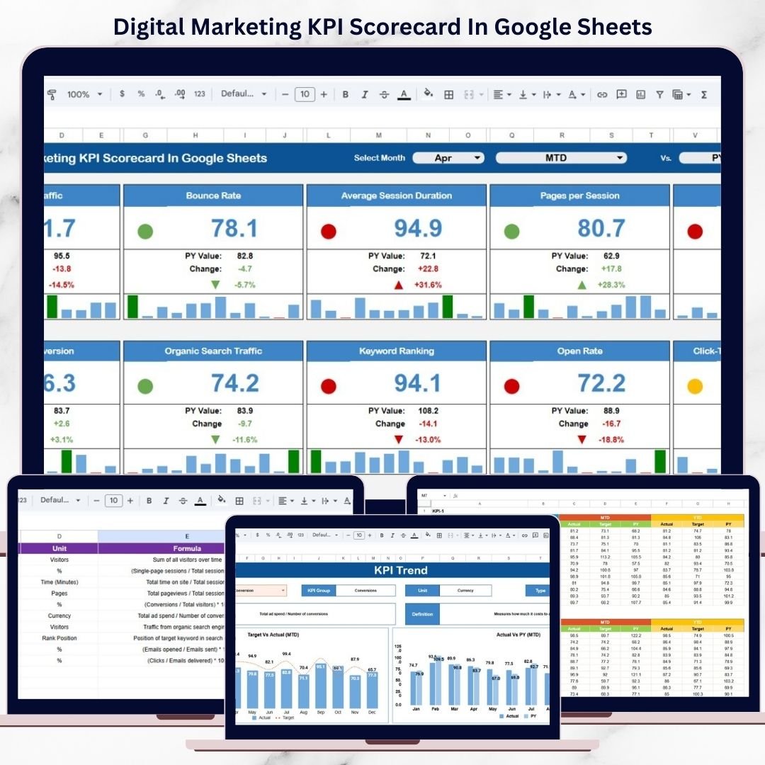 That is exactly why the Digital Marketing KPI Scorecard in Google Sheets becomes a powerful and practical solution for modern marketing teams.