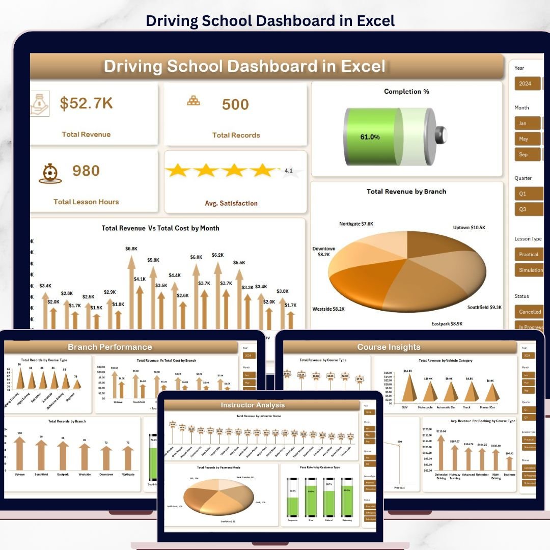 For driving schools that want branch, instructor, and course analytics without paying $50–$130 per branch every month, the Driving School Dashboard in Excel sits in the sweet spot.