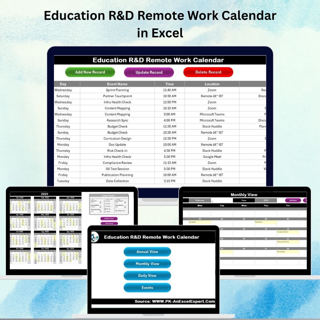 That’s where the Education R&D Remote Work Calendar in Excel comes in — your all-in-one, cost-effective, and user-friendly scheduling tool tailored specifically for schools, universities, research institutes, and educational startups.