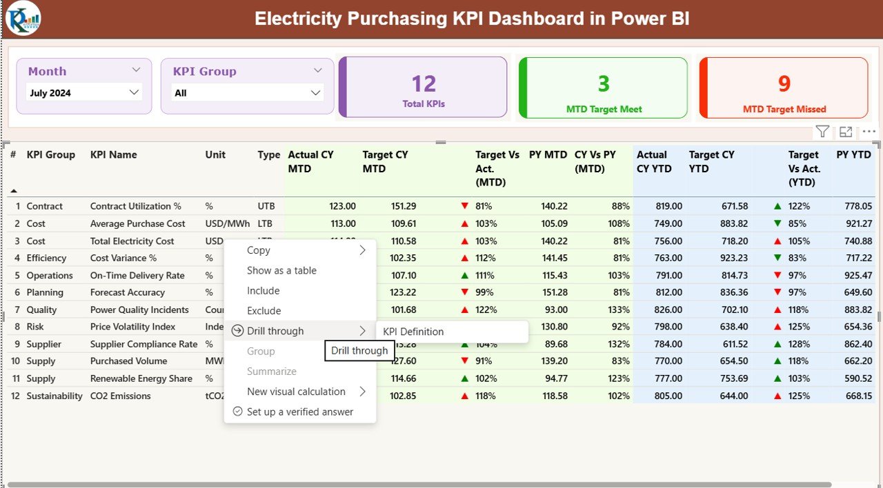 📦 What’s Inside the Electricity Purchasing KPI Dashboard