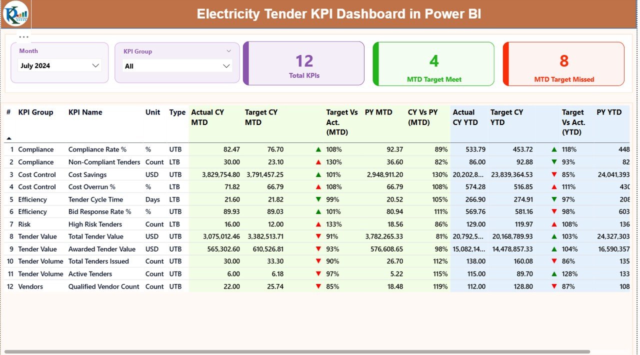 📦 What’s Inside the Electricity Tender KPI Dashboard in Power BI