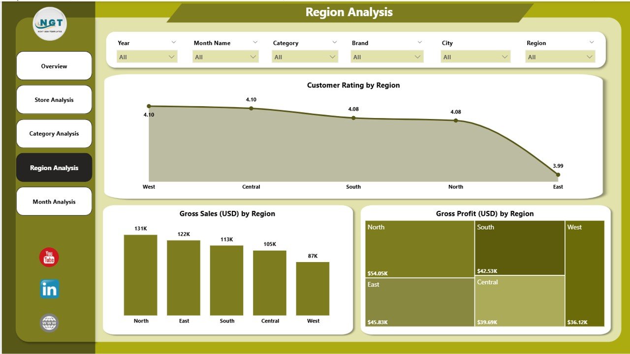 🌍 Region Analysis Page – Understand regional buying trends, profit performance, and customer ratings across locations.