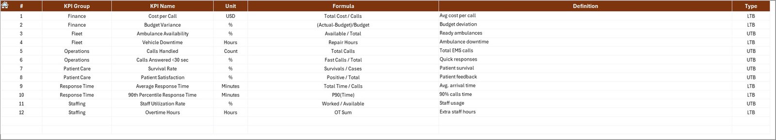 📦 What’s Inside the Emergency Medical Services KPI Dashboard in Excel