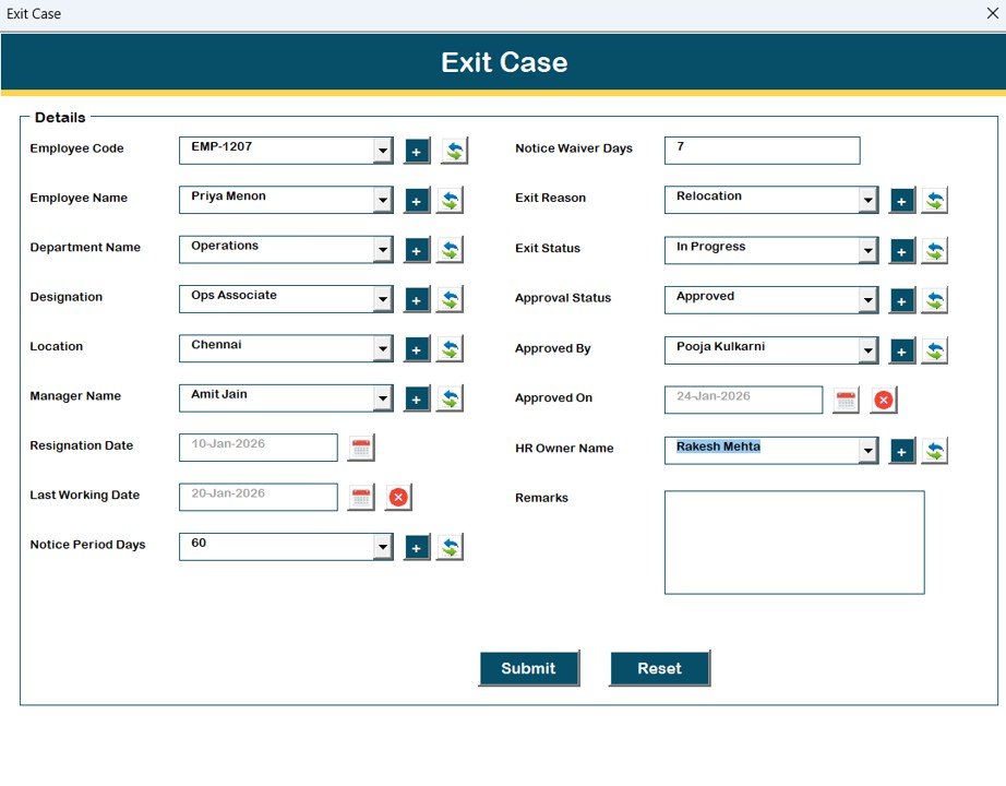 Employee Exit Management System V1.0 – Excel & VBA Based HR Solution