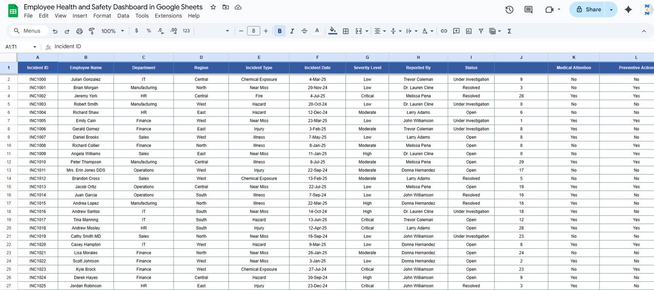 With the Employee Health and Safety Dashboard in Google Sheets, you’ll strengthen compliance, protect your workforce, and create a safer environment for everyone. 🌟