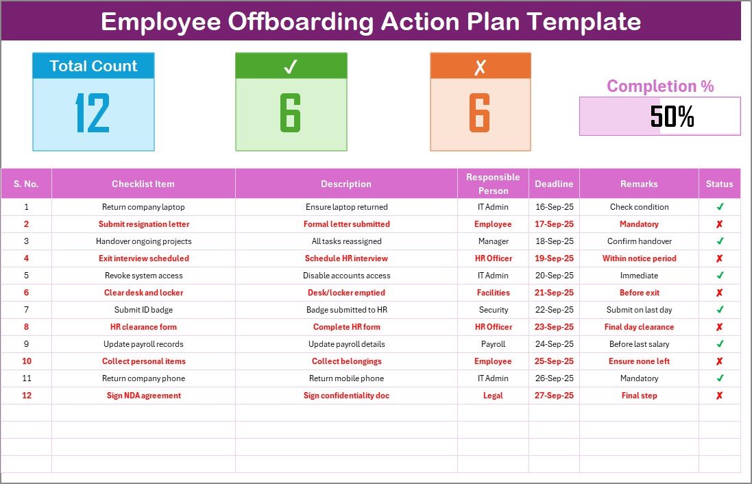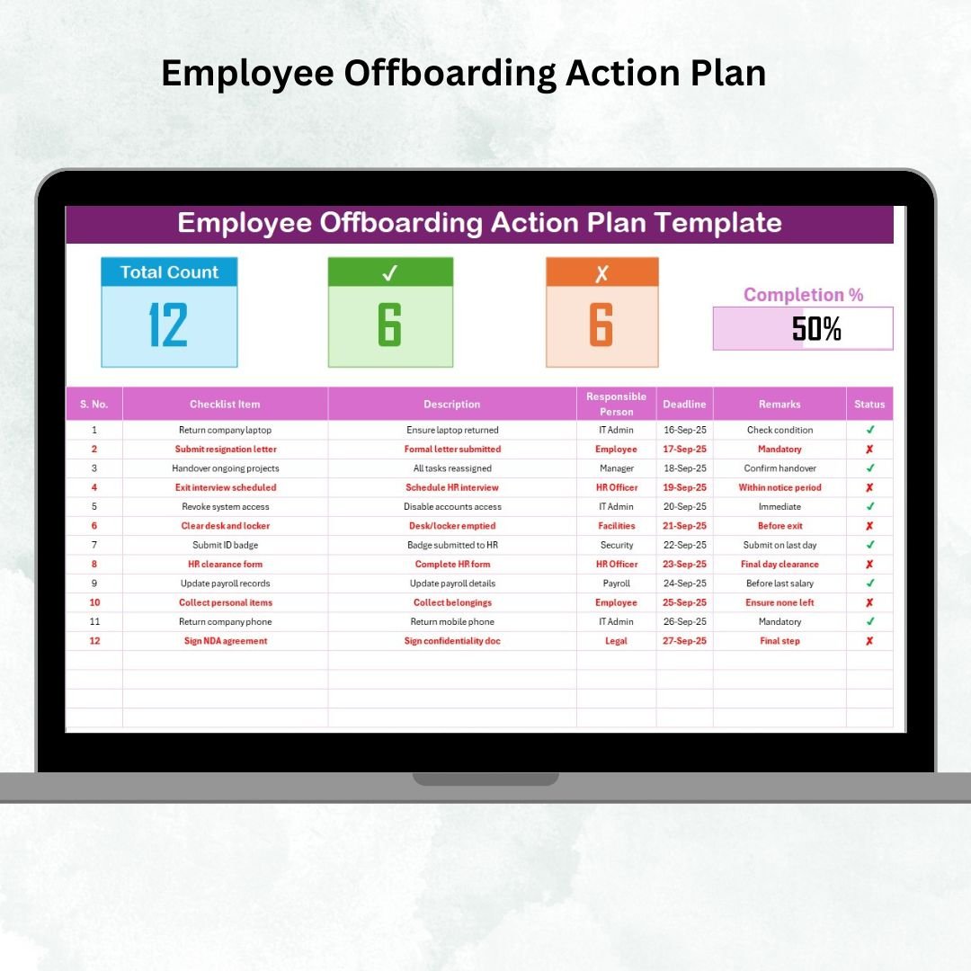 ✨ Key Features of Employee Offboarding Action Plan Checklist Template in Excel