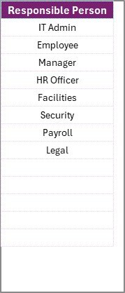 ✅ Drop-Down List of Responsible Persons – Assign accountability quickly without retyping names.