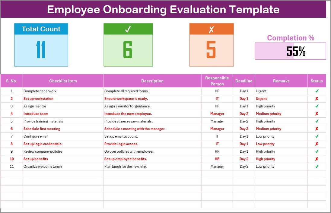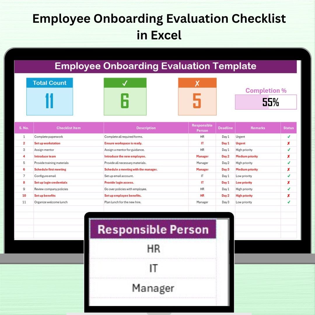 Key Features of the Employee Onboarding Evaluation Checklist in Excel
