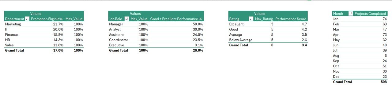 🚀 Promotion Readiness Tracking: Identify promotion-eligible employees instantly using automated percentage calculations.