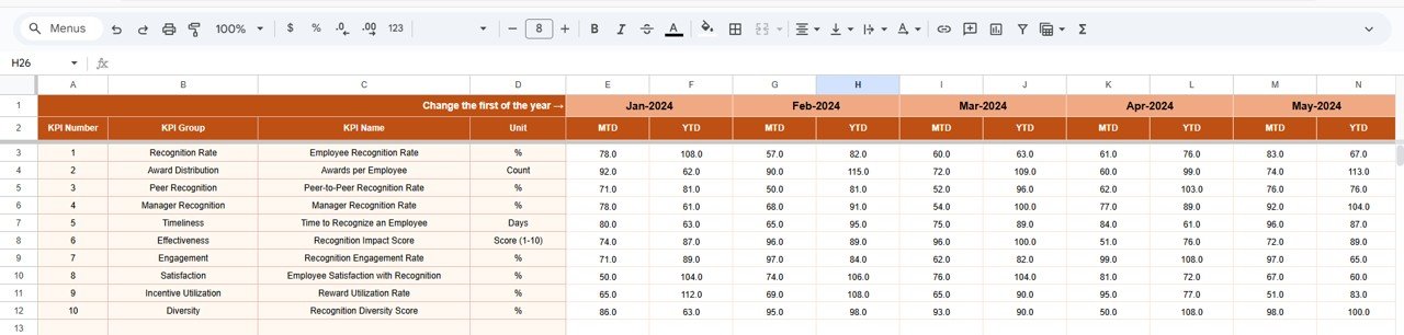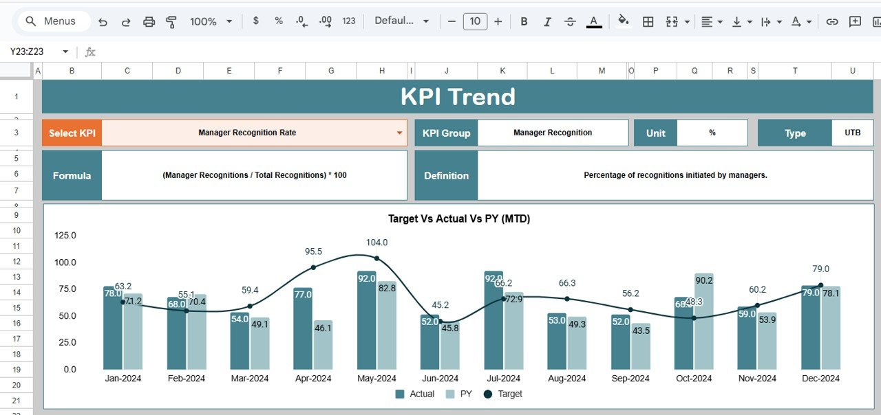 This ready-to-use dashboard converts recognition activities into structured, measurable KPIs. Instead of relying on assumptions or manual reports, HR leaders can now track recognition frequency, participation levels, target achievement, and year-over-year improvement in one centralized dashboard. As a result, recognition programs become data-driven, transparent, and strategically aligned with business goals.