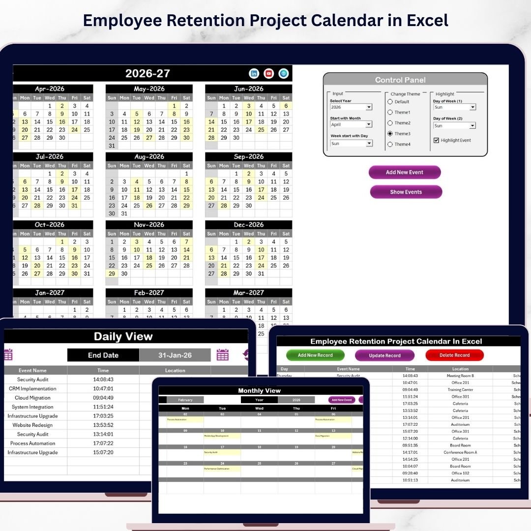 Boost your employee retention strategy with the Employee Retention Project Calendar In Excel – a comprehensive, easy-to-use digital calendar template designed specifically for HR professionals, managers, and business leaders. This ready-to-use Excel template offers a seamless way to plan, track, and manage employee retention projects and events throughout the year.