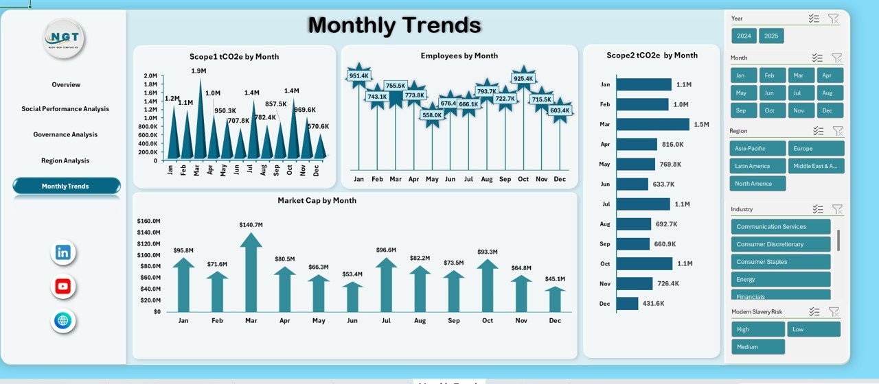 Track ESG performance changes over time using month-wise trend charts for better forecasting.