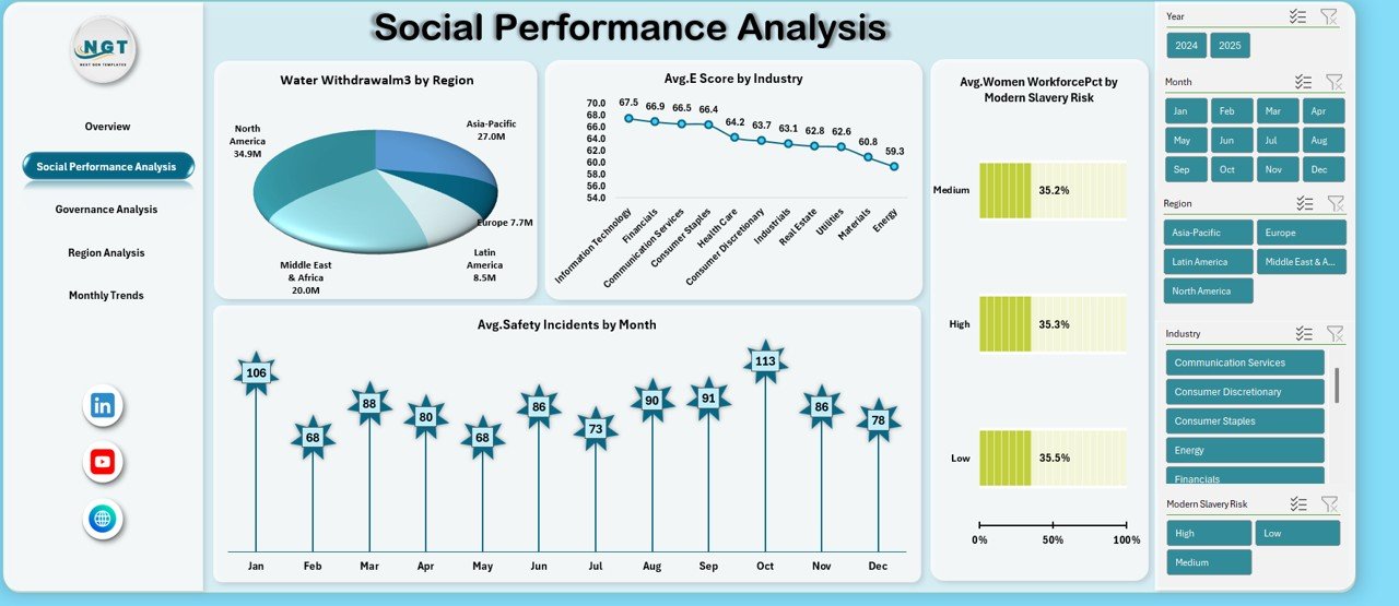 That is exactly why the Environmental, Social, and Governance (ESG) Dashboard in Excel is the perfect solution. This ready-to-use Excel dashboard converts complex ESG data into clear, visual, and decision-ready insights—without expensive software or steep learning curves.