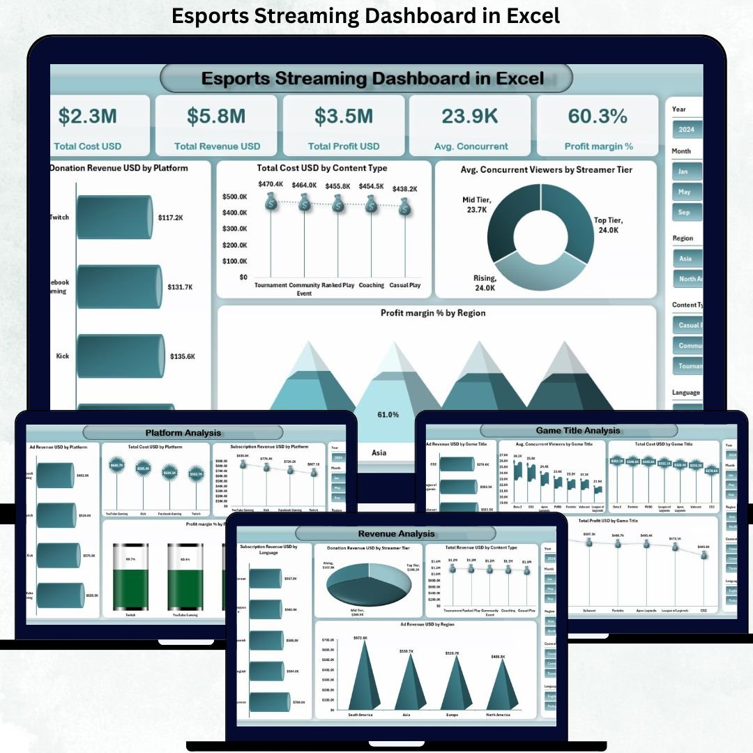 The esports’ streaming world is no longer driven by passion alone—it is driven by data, profitability, and audience intelligence. With millions of viewers, multiple platforms, diverse revenue streams, and rising costs, esports streamers and organizations must track performance precisely. Esports Streaming Dashboard in Excel However, relying on raw spreadsheets or platform dashboards often leads to fragmented insights and missed opportunities.