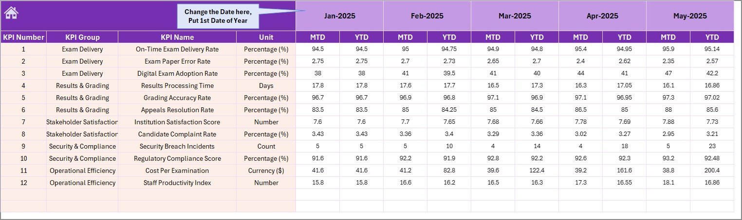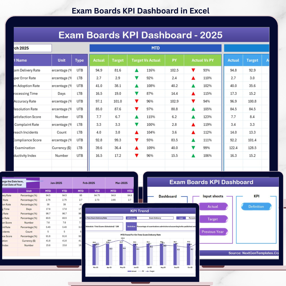 📦 What’s Inside the Exam Boards KPI Dashboard in Excel