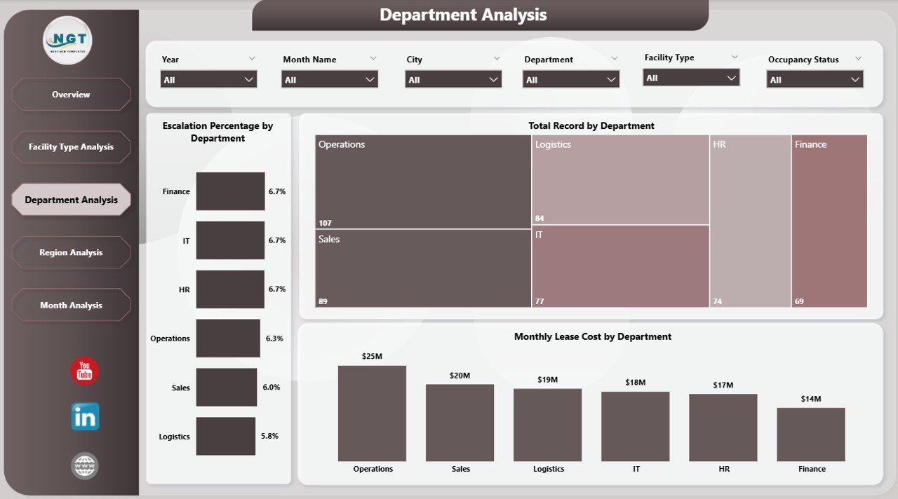 Monitor department-wise leasing expenses and improve budget accountability.