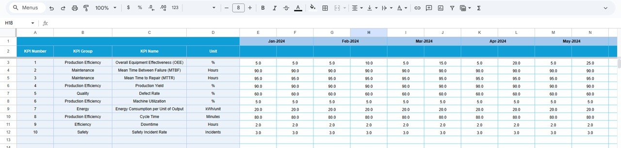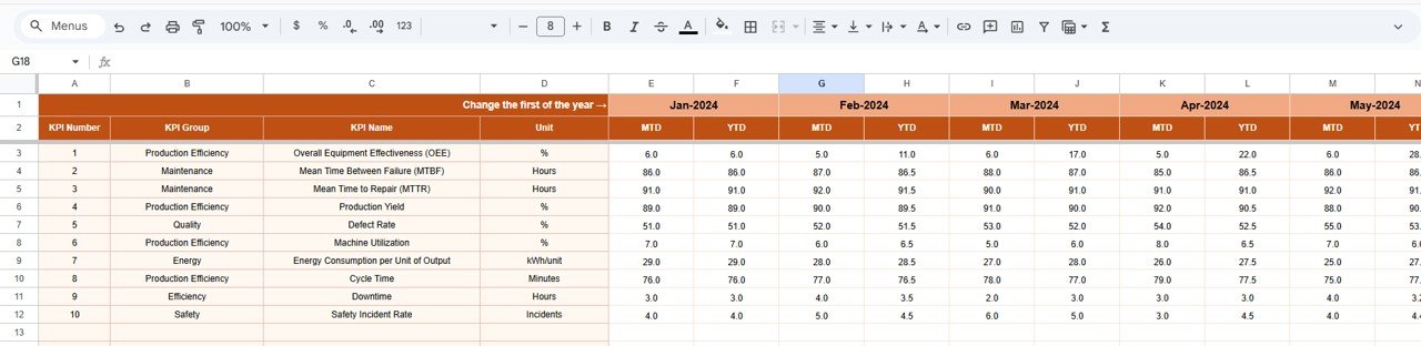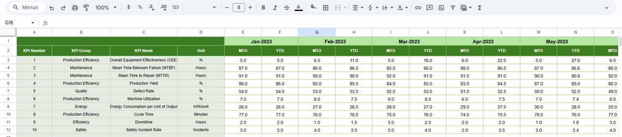 ⭐ Key Features of Factory Automation KPI Dashboard in Google Sheets