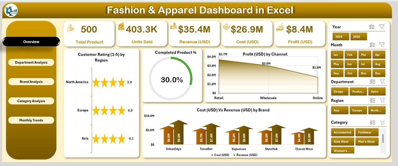 ⚙️ Key Features of the Fashion & Apparel Dashboard in Excel