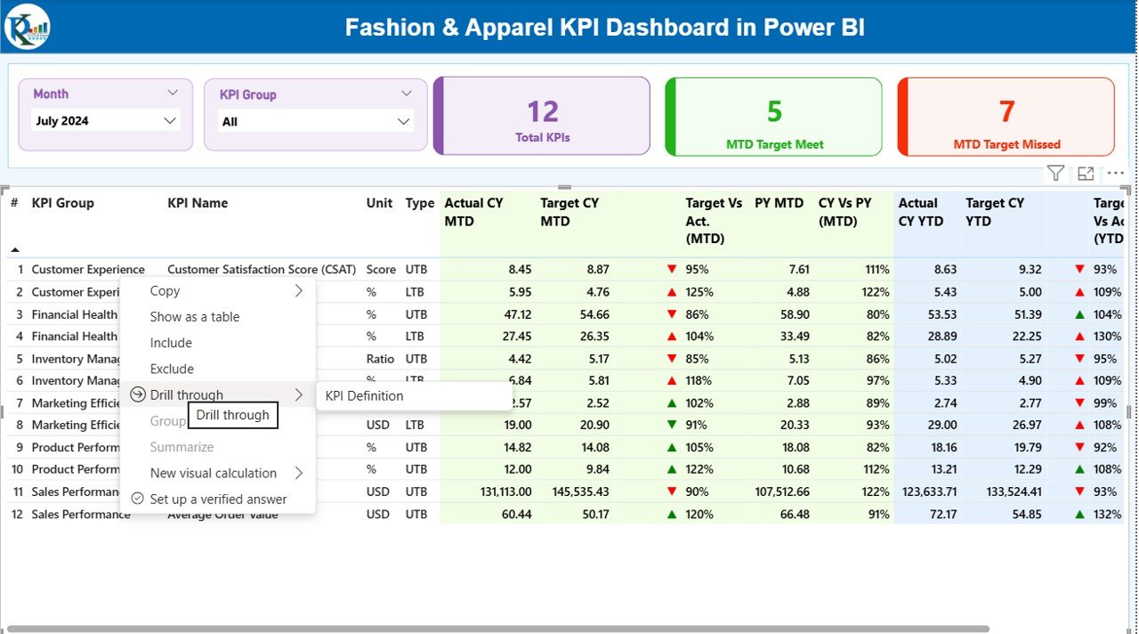 🧭 How to Use the Fashion & Apparel KPI Dashboard in Power BI