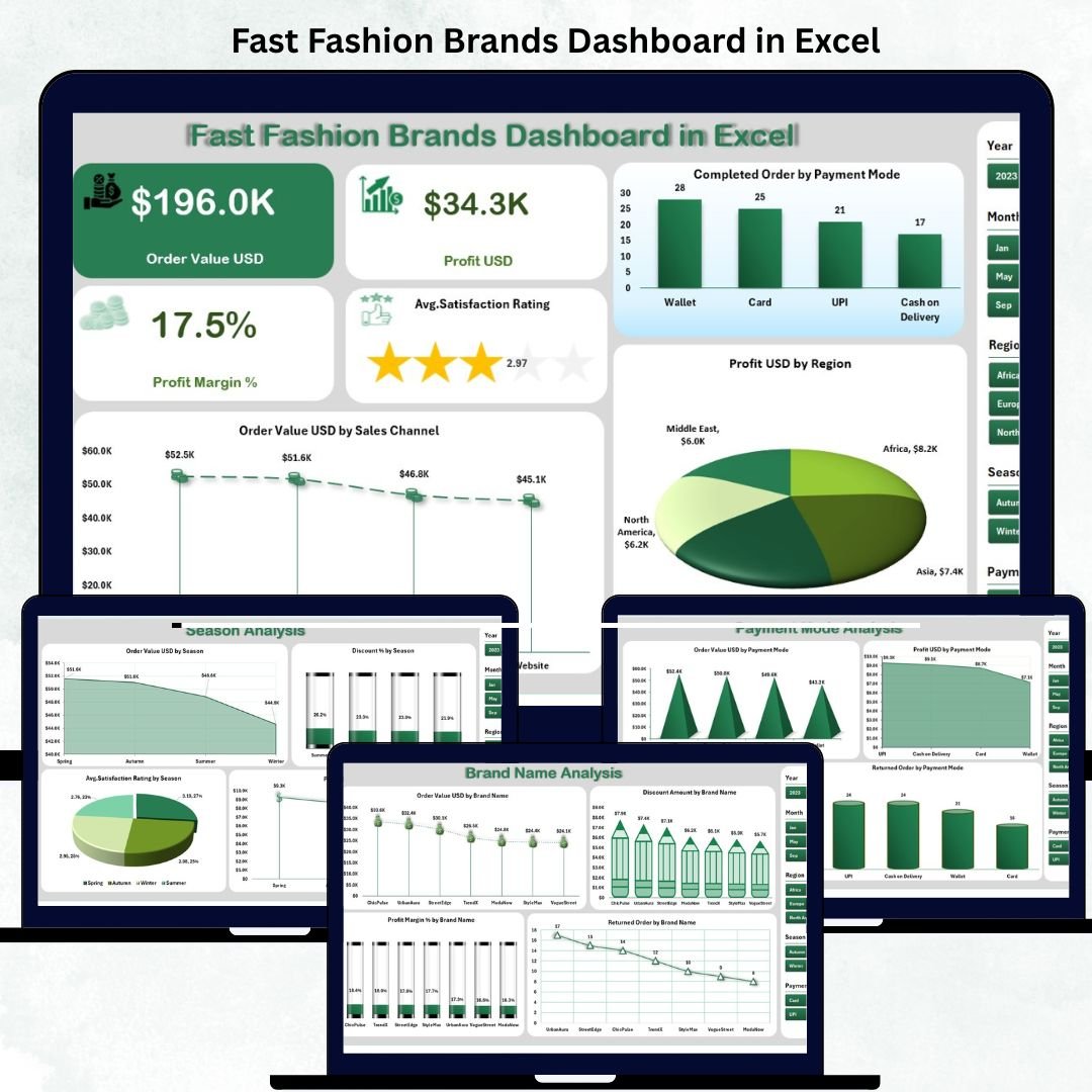 The fashion world moves fast — and data drives every smart decision. 👗📊 The Fast Fashion Brands Dashboard in Excel is a powerful, ready-to-use template that helps you track sales, profits, discounts, and customer satisfaction across brands, regions, and seasons — all in one interactive Excel file.